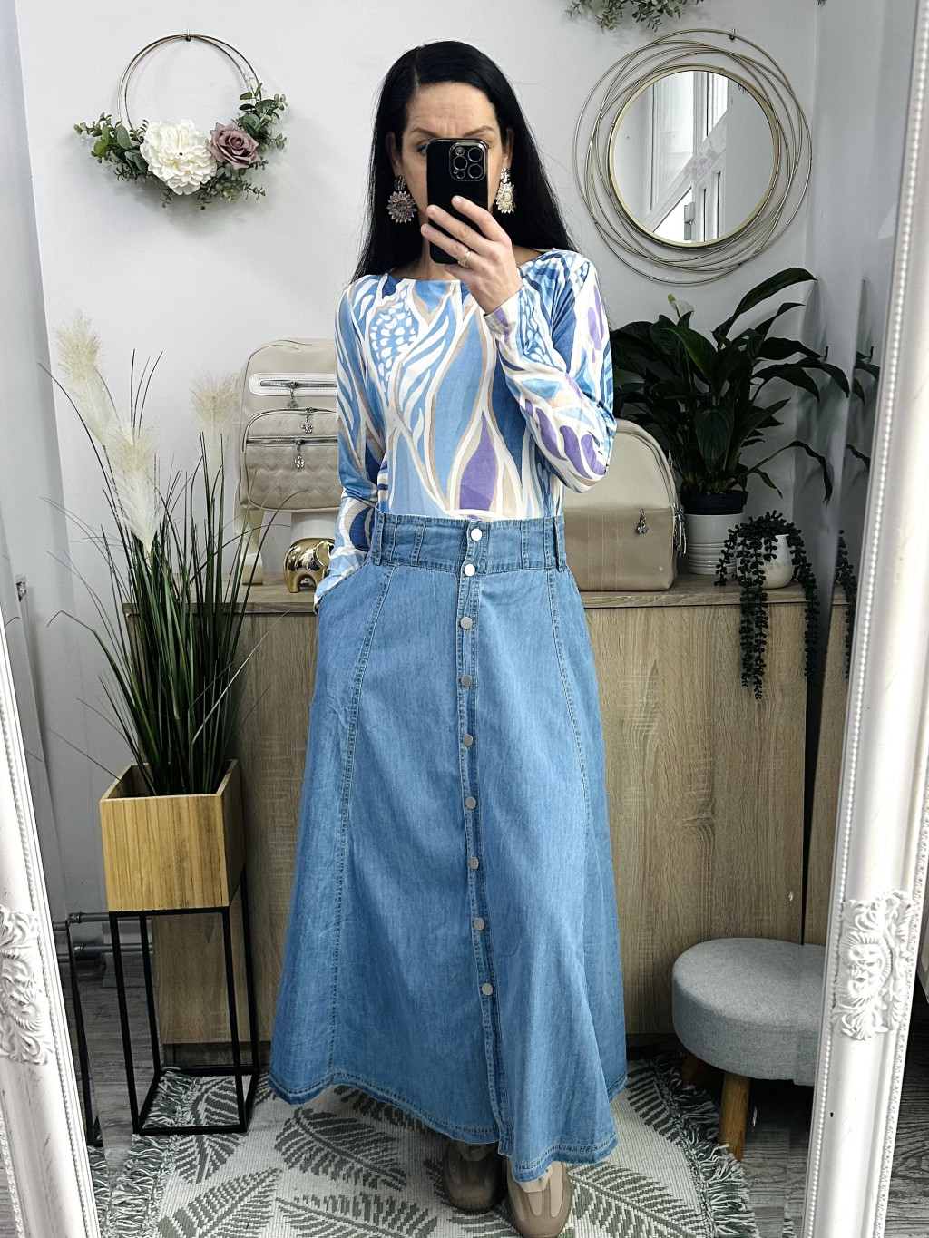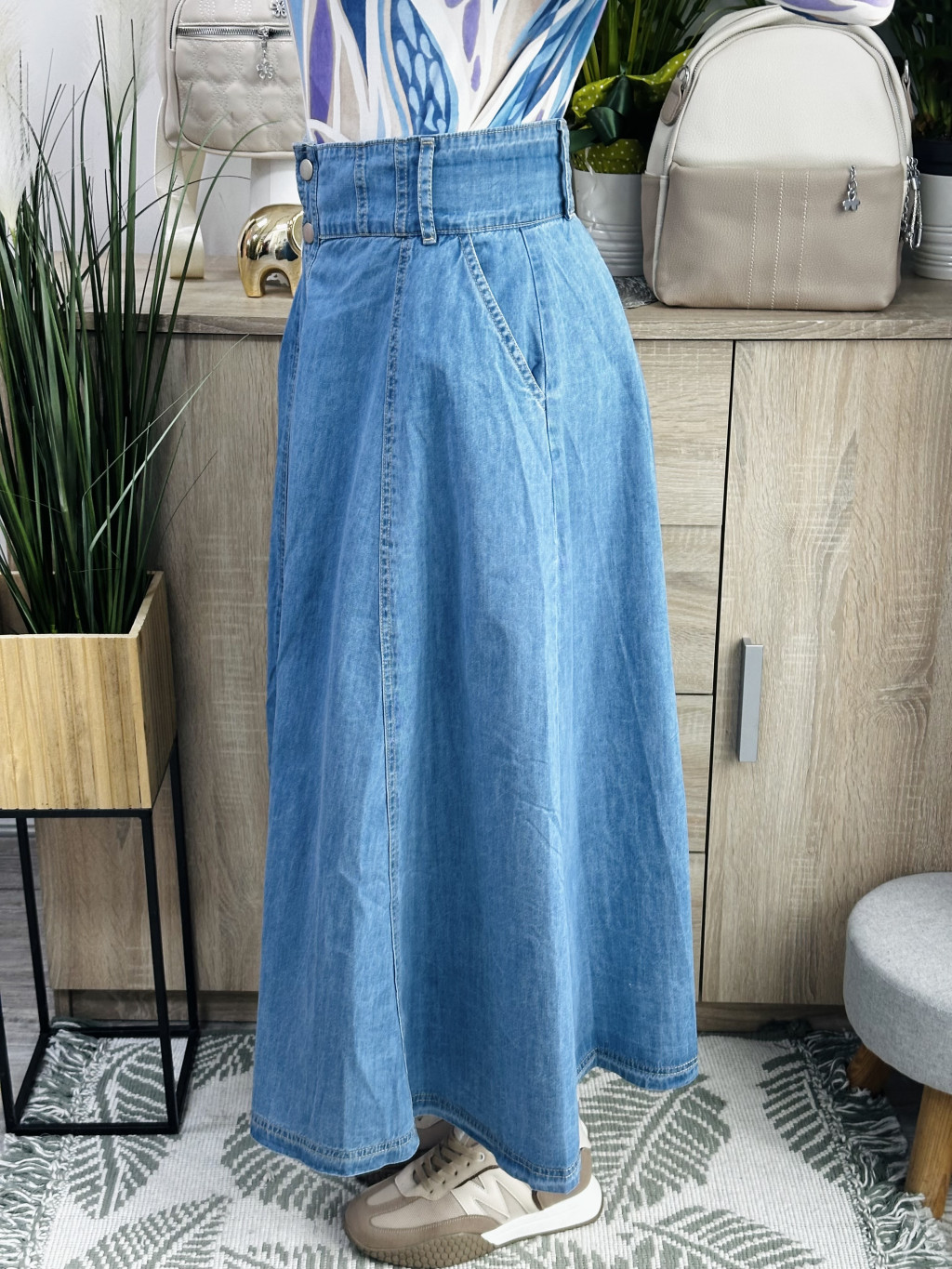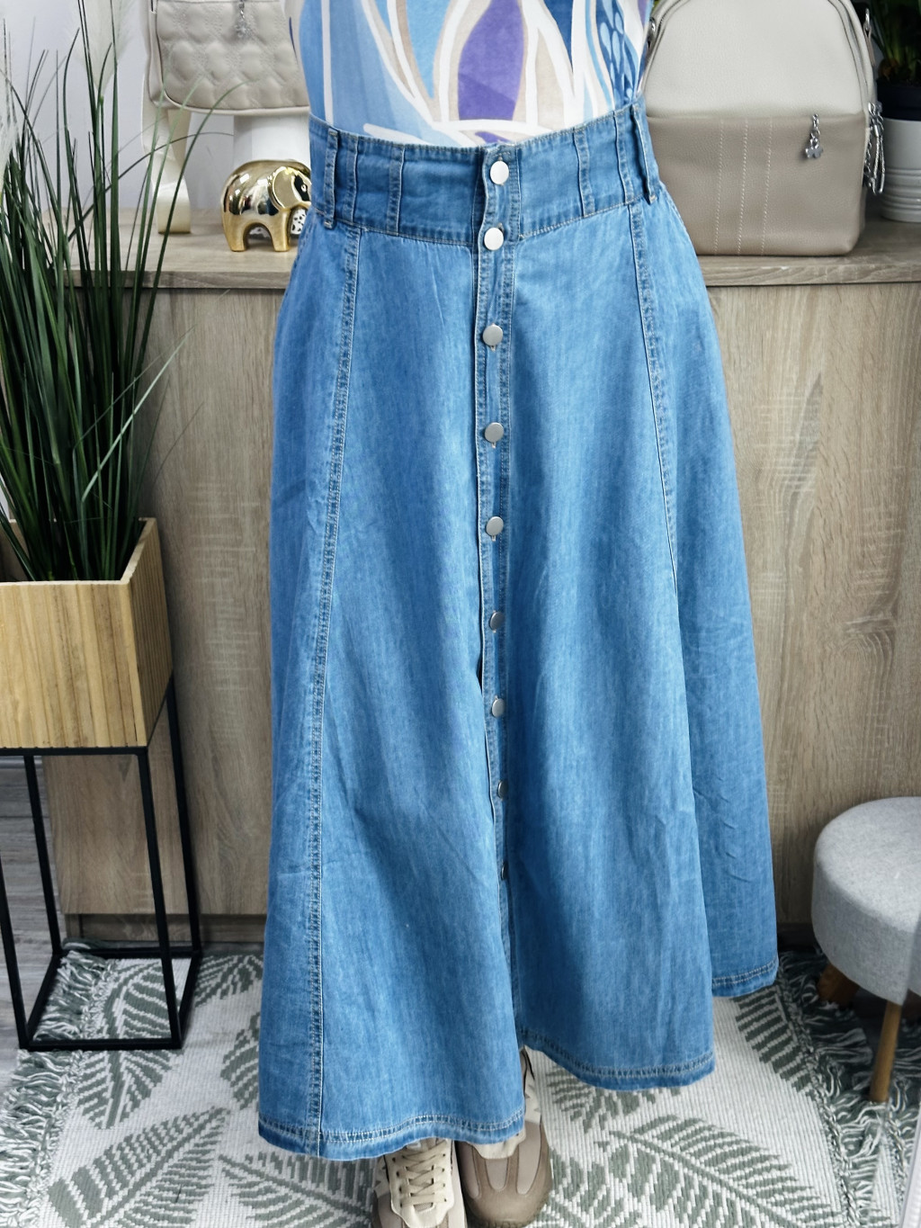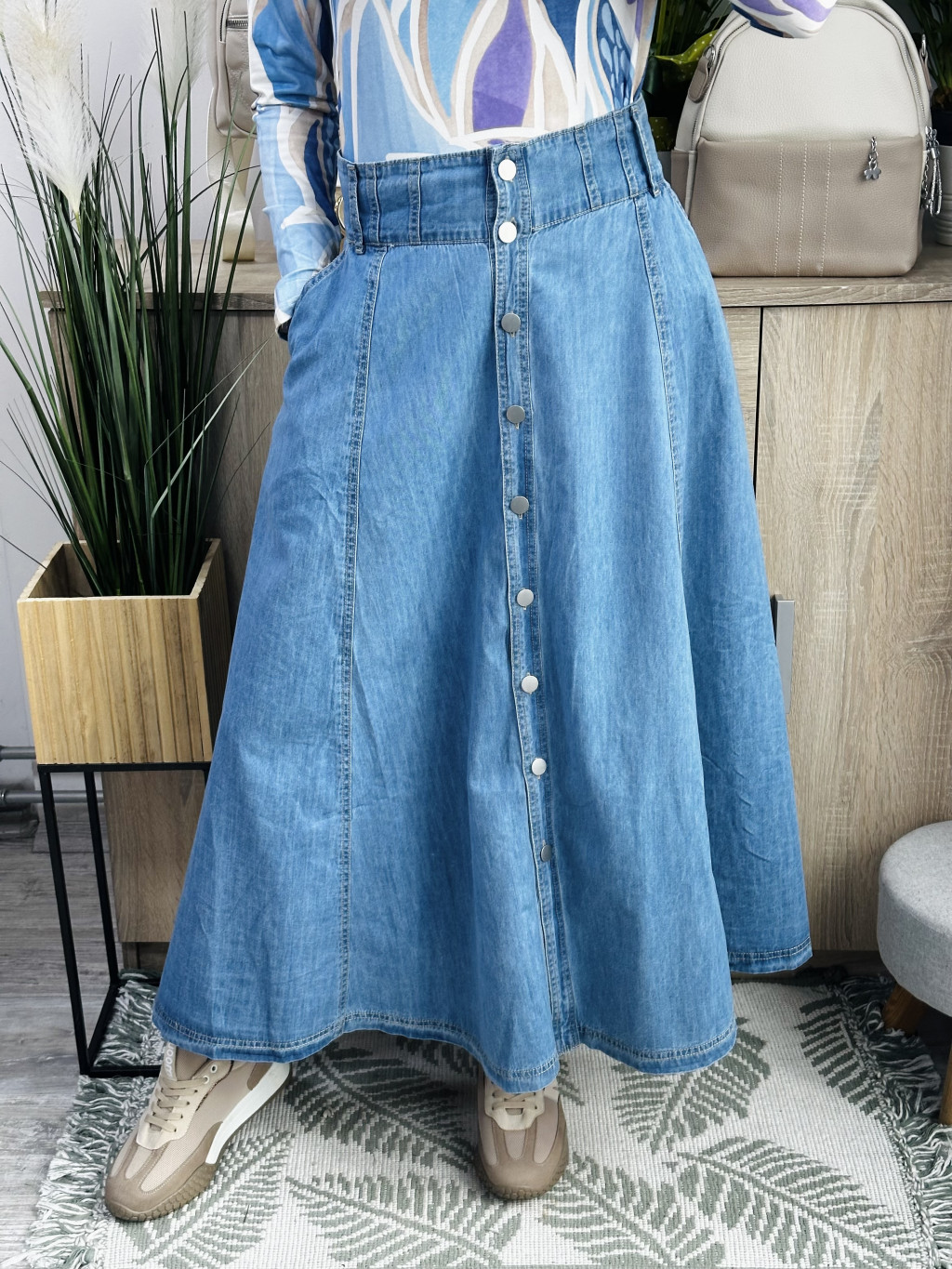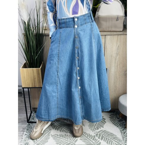 Jasmine farmer szoknya. Méretezett modell. Lefelé bővülő fazon. Vékony, puha anyagból. Vastag fekete műbőr övvel együtt szállítjuk. Elérhető méret: M, L
