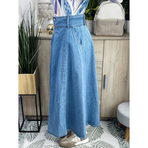 Jasmine farmer szoknya. Méretezett modell. Lefelé bővülő fazon. Vékony, puha anyagból. Vastag fekete műbőr övvel együtt szállítjuk.