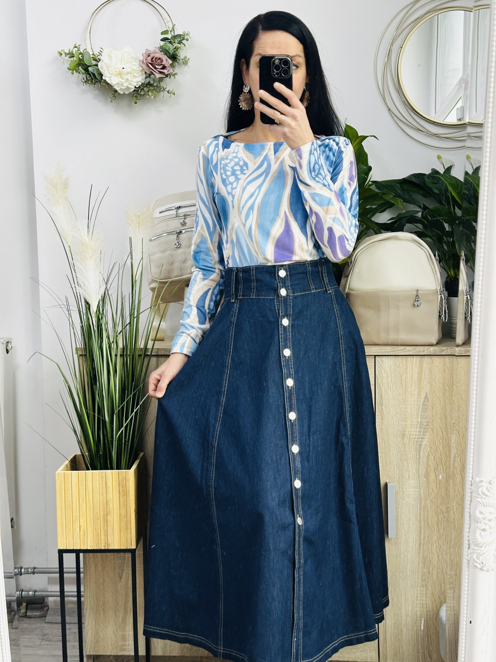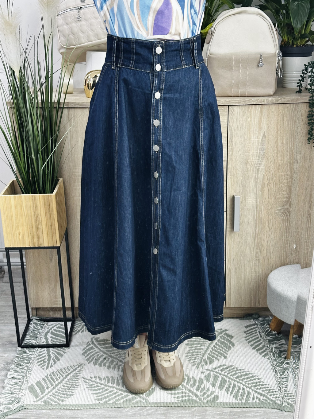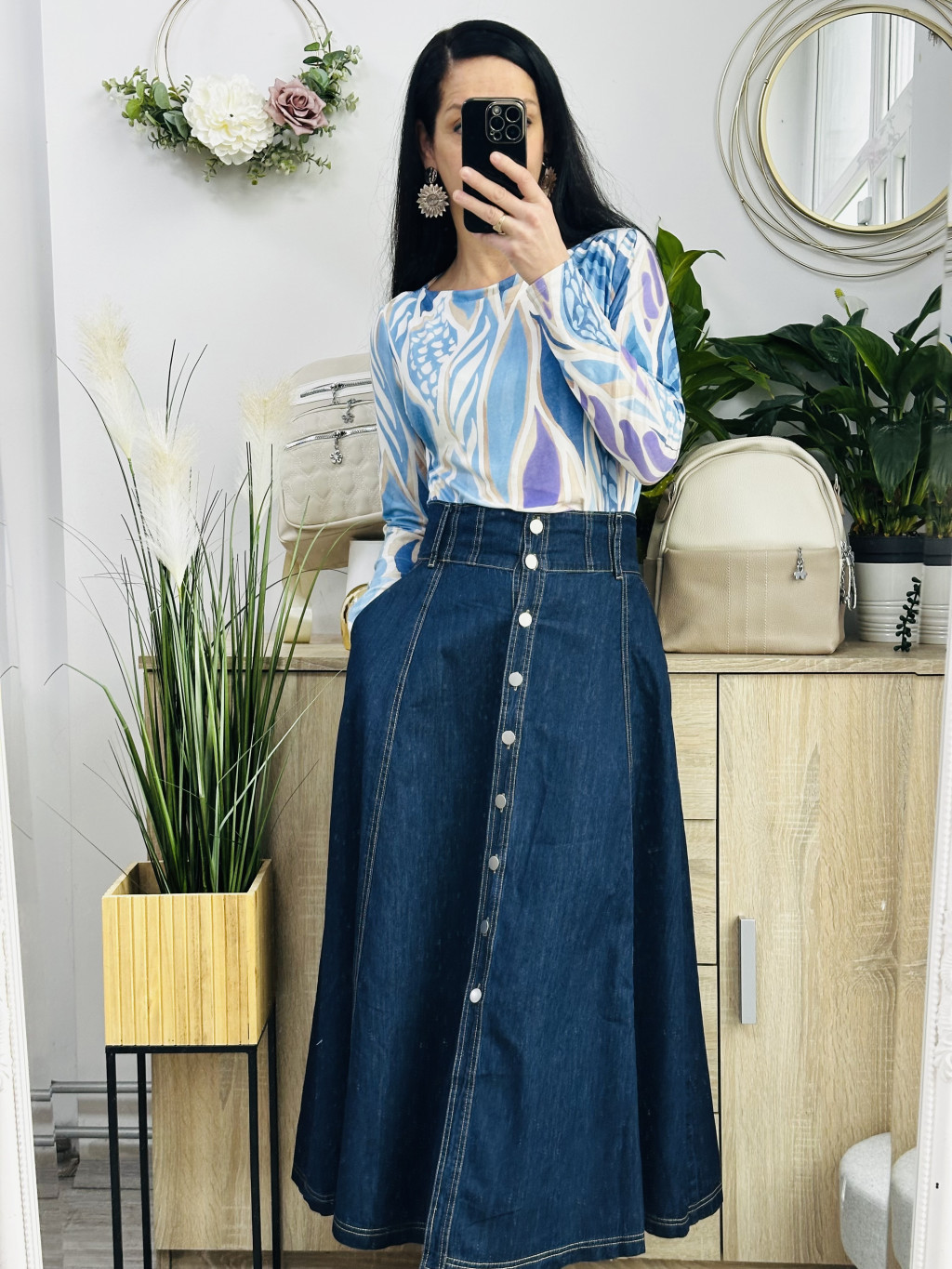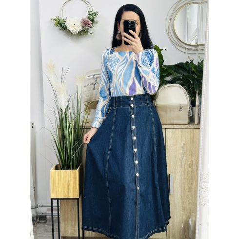 Jasmine farmer szoknya. Méretezett modell. Lefelé bővülő fazon. Vékony, puha anyagból. Vastag fekete műbőr övvel együtt szállítjuk. Elérhető méret: M, L