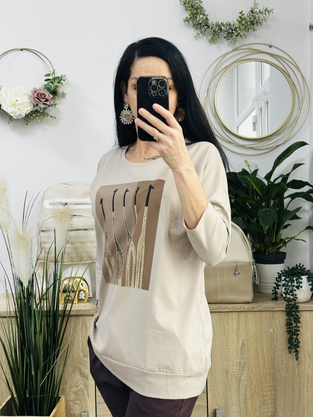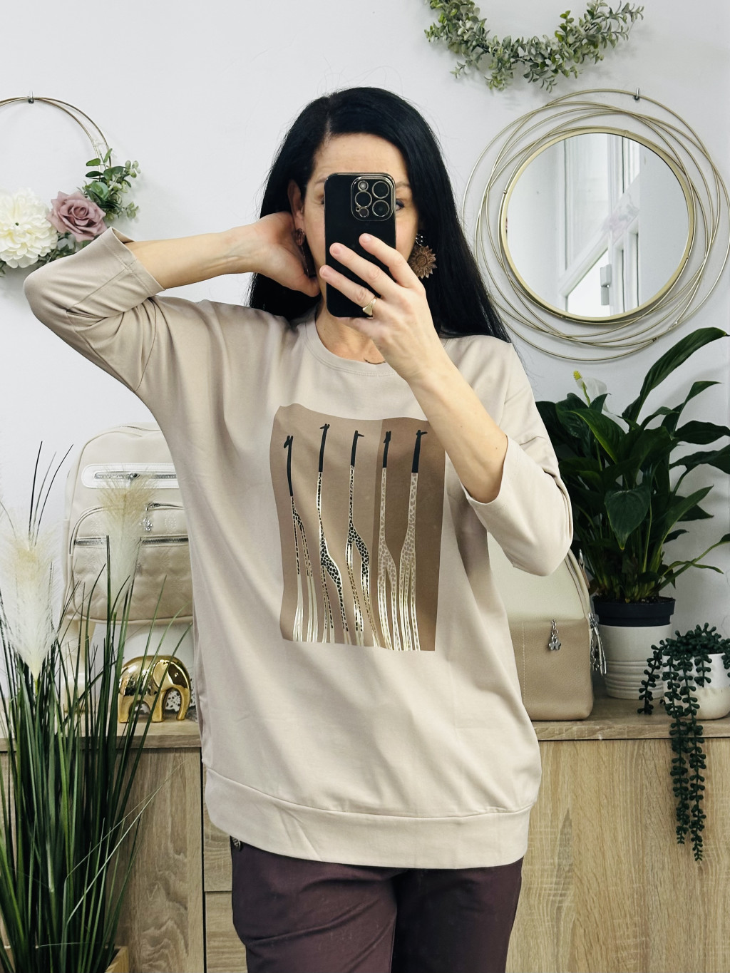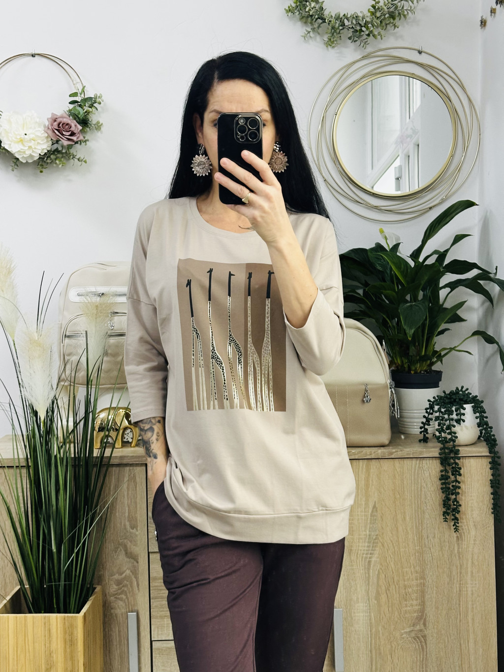 Kontraszt zsiráfos felső. Méret nélküli modell, 3/4-s ujjal.
