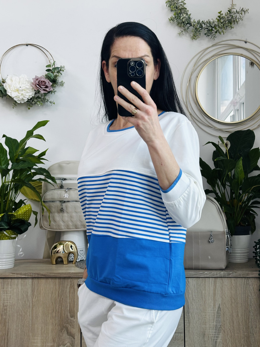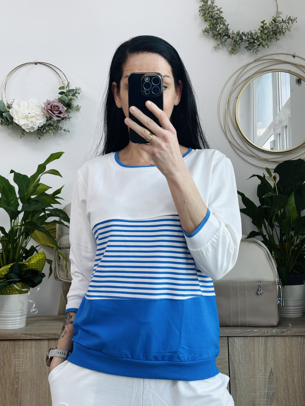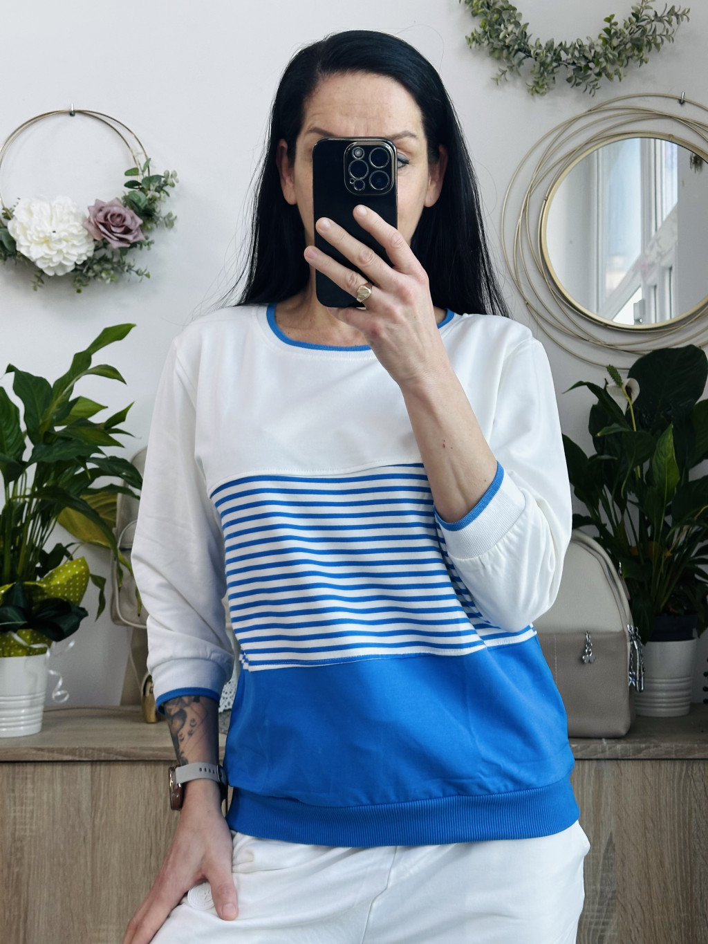 Megi csíkos felső. Méretezett modell. Kör nyakkivágással, 3/4-s ujjal. Kiváló minőségű lengyel felső. Elérhető méret: S/M