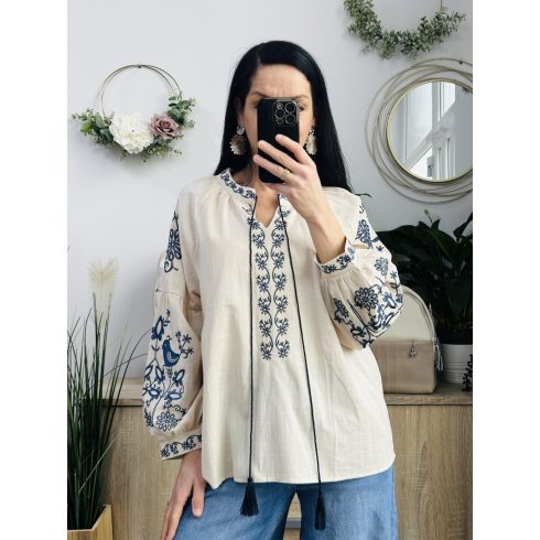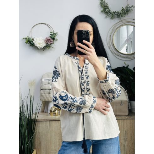 CCG hímzett madaras felső, krém