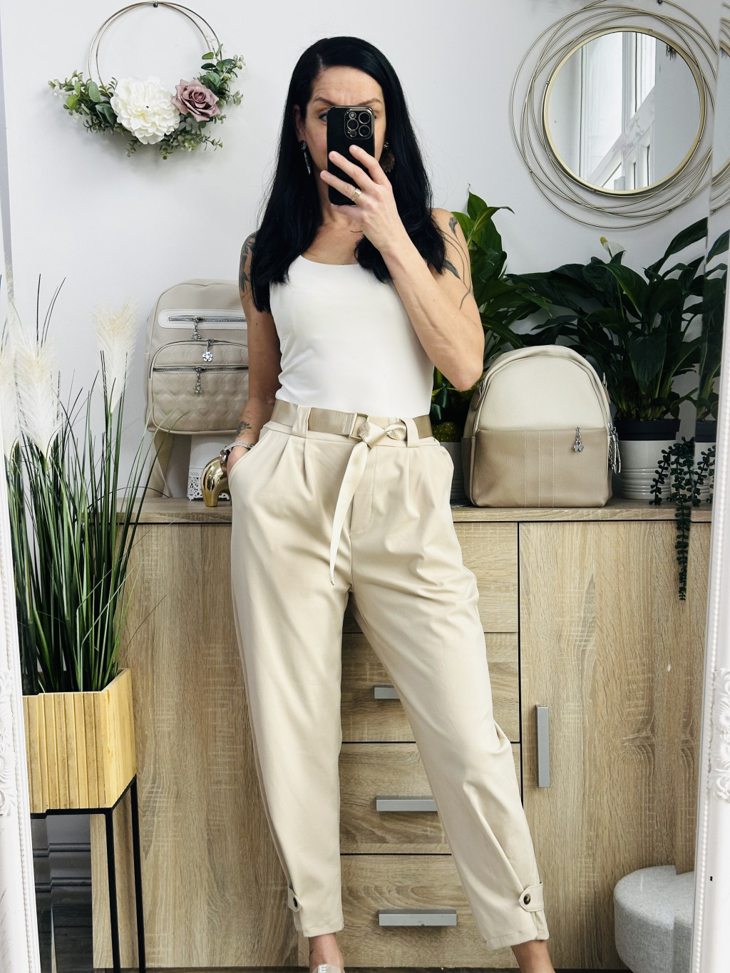 Olasz laza fazonú nadrág, bézs