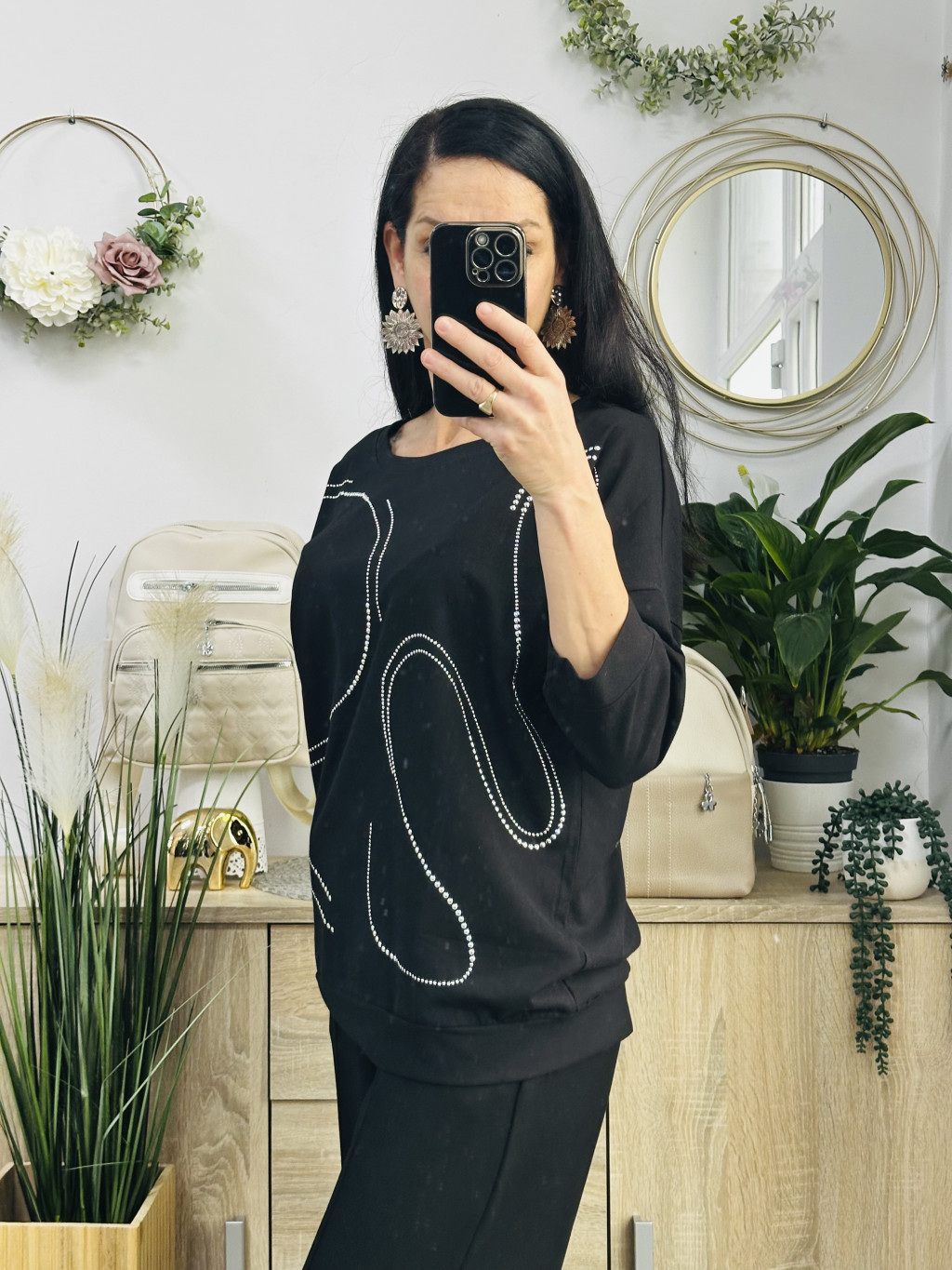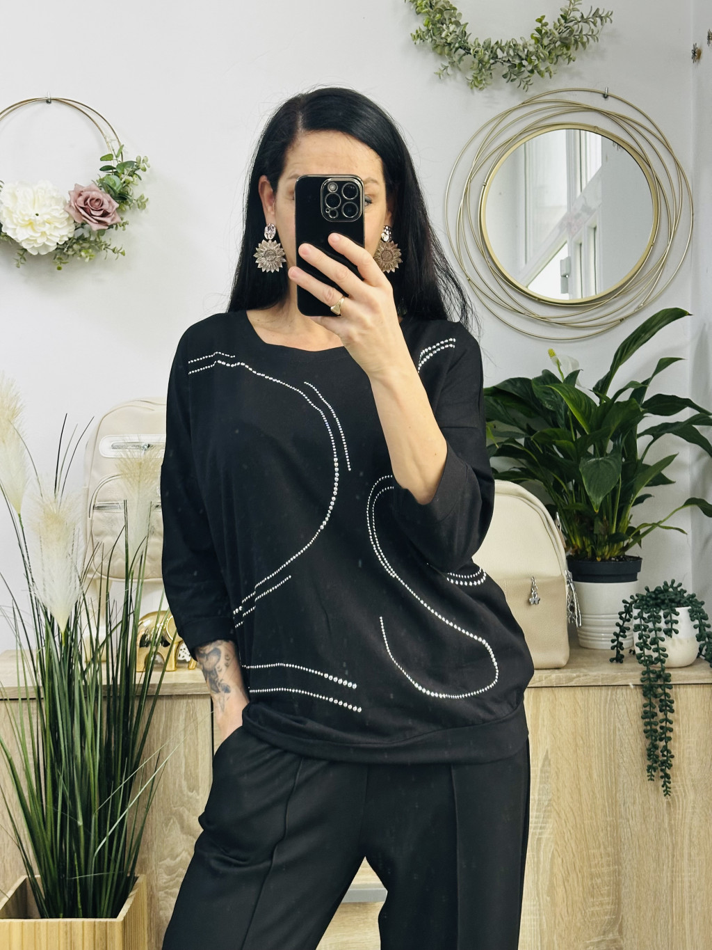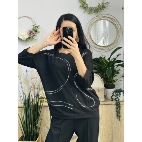Kira török felső, elől ezüst díszítéssel, amik ragasztva vannak. 3/4-s ujjú modell. Méret nélküli, nagyobb fazonú felső. Pamut anyagú, nagyon jó minőségű felső.