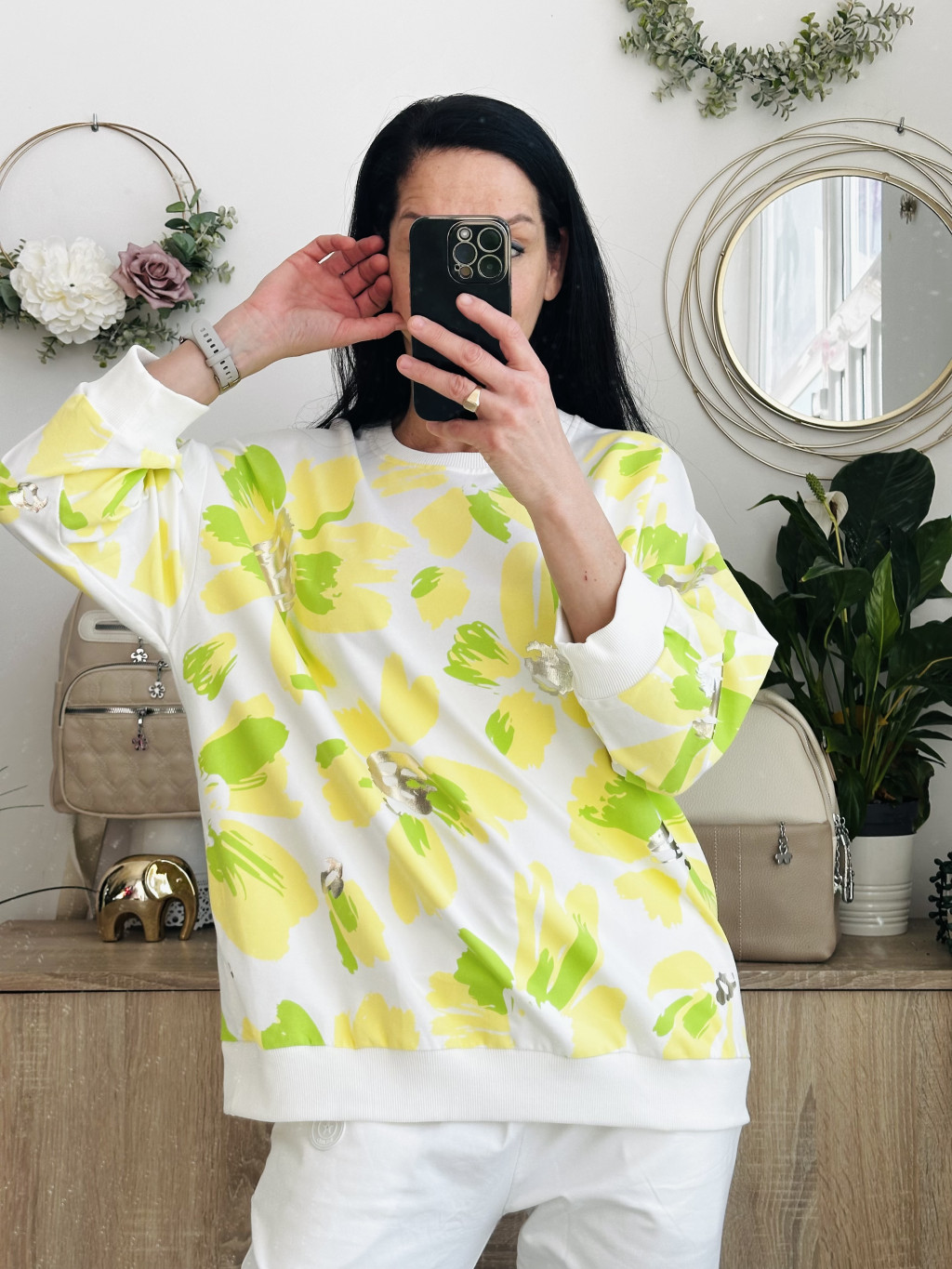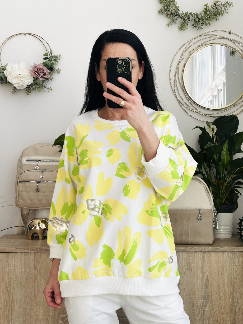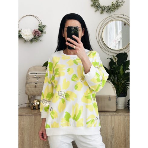 Megi nagyobb fazonú mintás felső, zöld-sárga