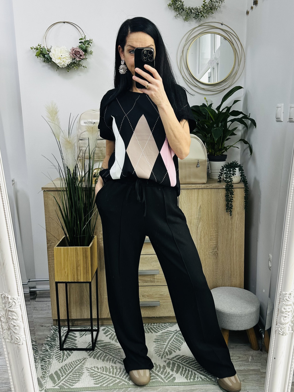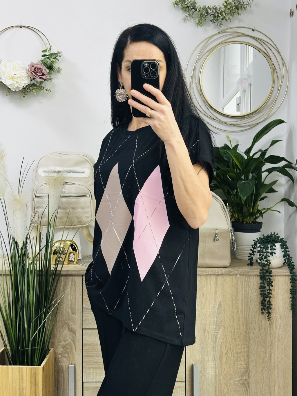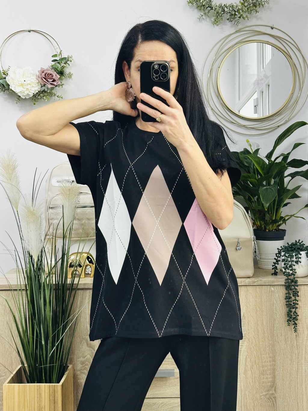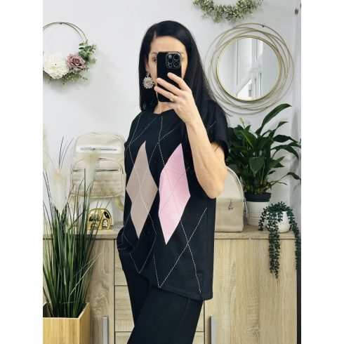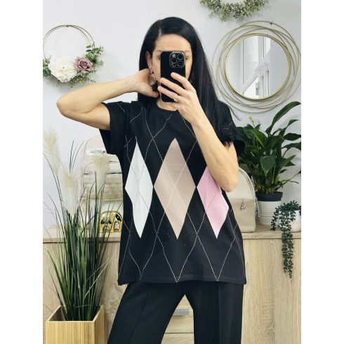 Klau káró mintás felső. Méret nélküli rövid ujjú modell. Elől káró mintávval.
