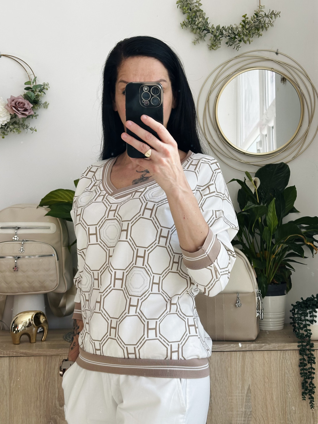 Megi 8 szöges felső. Méretezett modell. V nyakkivágással, 3/4-s ujjal. Passzéval díszítve. Kiváló minőségű lengyel felső. Elérhető méret: S/M