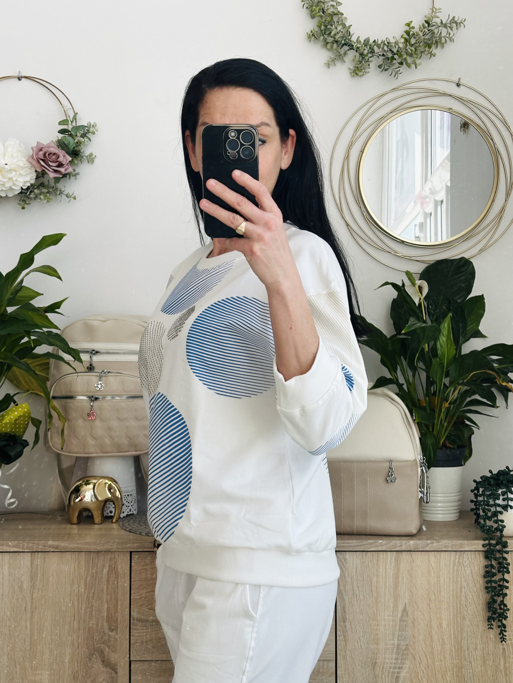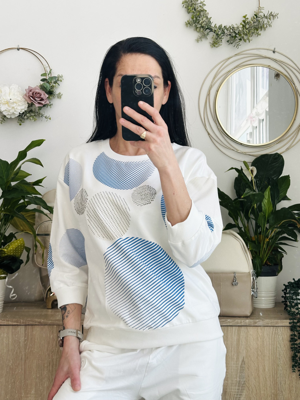 Megi körös felső. Méretezett modell. Kör nyakkivágással, 3/4-s ujjal. Kiváló minőségű lengyel felső. Elérhető méret: S/M