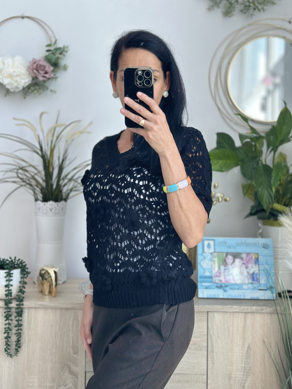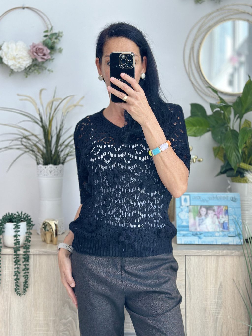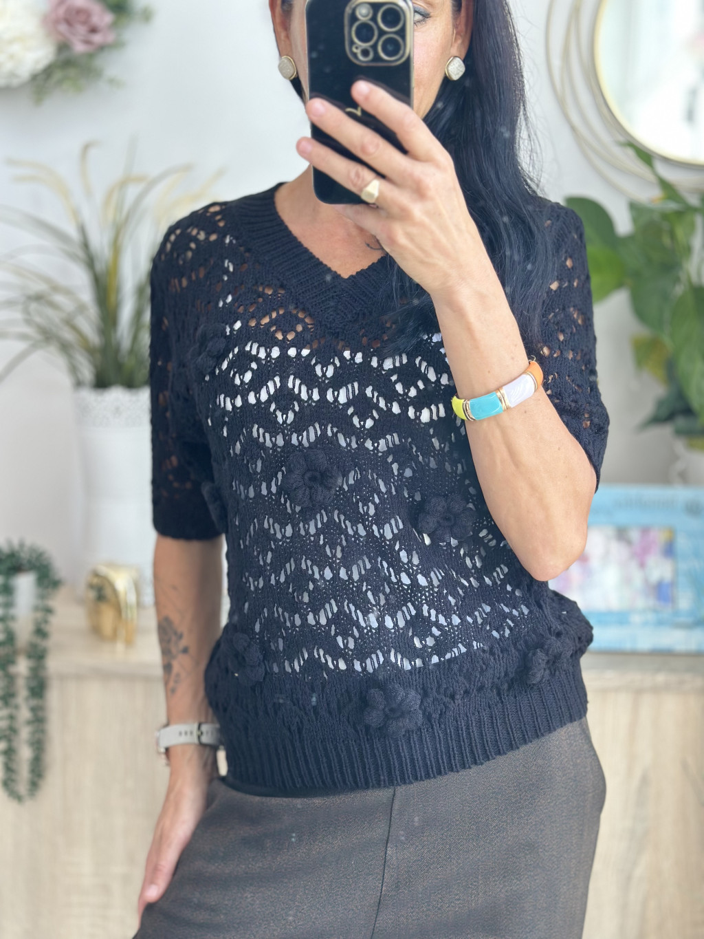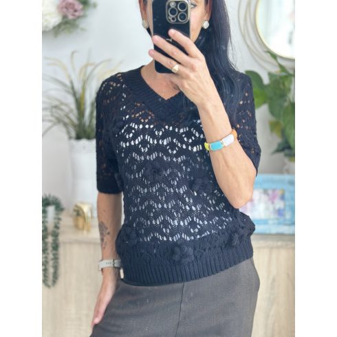 E-Woman horgolt felső, fekete