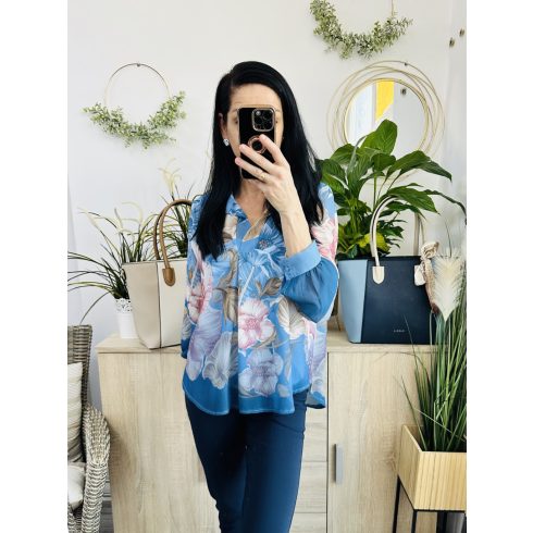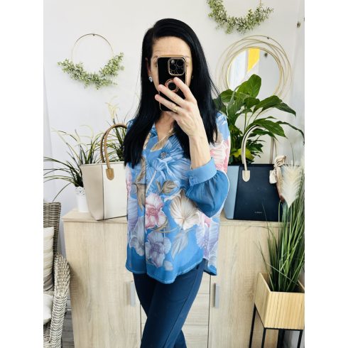 Tina mintás virágos felső. Méret nélküli modell. V nyakkivágással. A felső béléssel ellátott. Elől rövidebb, hátul hosszabb fazon.