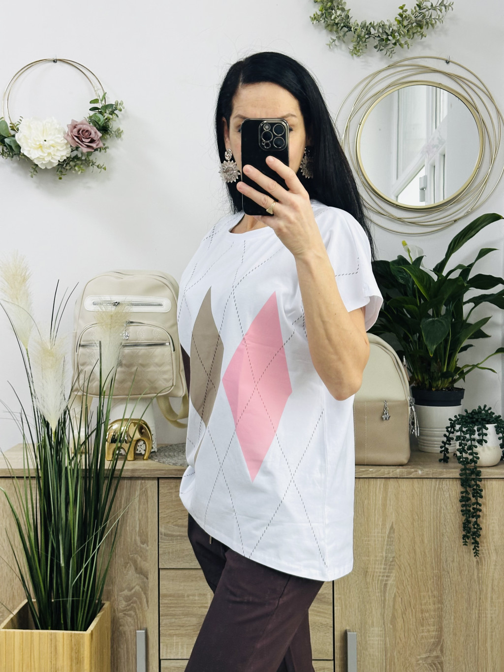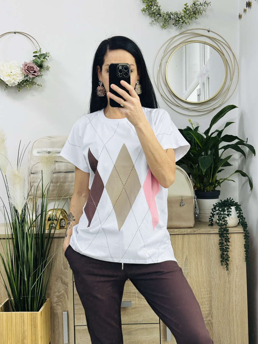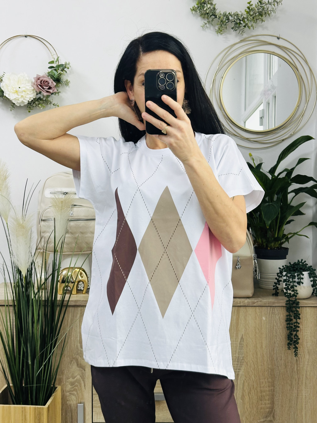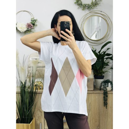 Klau káró mintás felső, fehér